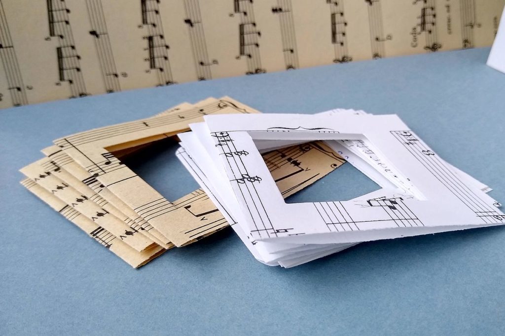 Kalka techniczna, papier pergaminowy zamknięte w ramce oddają charakter przezroczystej powierzchni i spełnią rolę szybki.