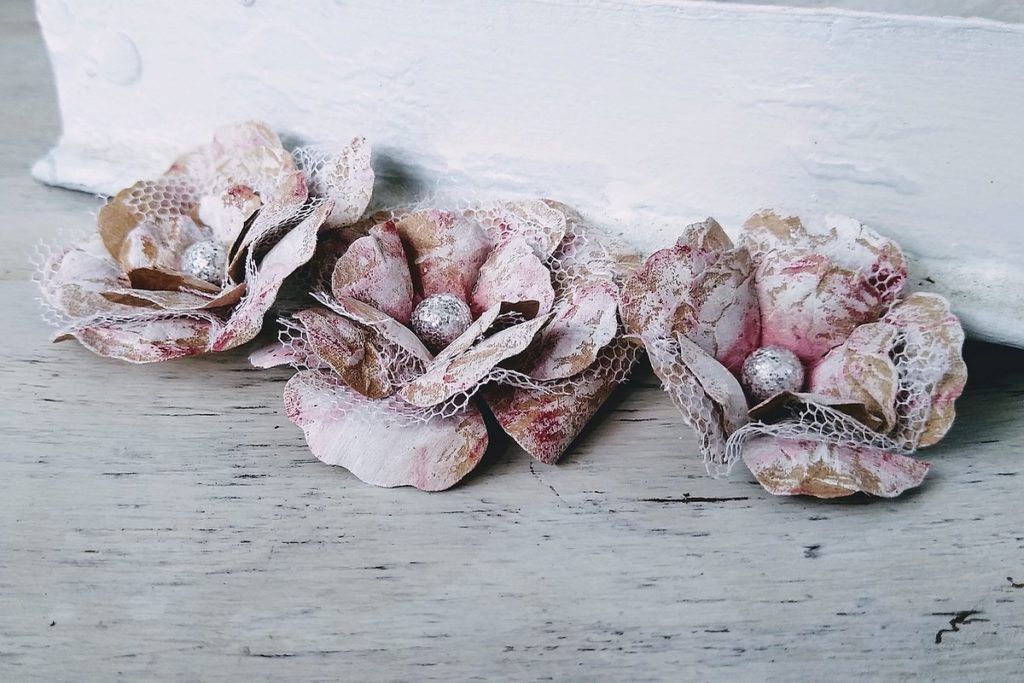 Na początek wchodzą na jego półki tylko te produkty, które sama wytwarzam. Czyli ręcznie robione kwiatki, jak te, które były tematem kursu, i niedawno dołączone kwiaty, które się Wam bardzo spodobały, shabby chic z woalem:
