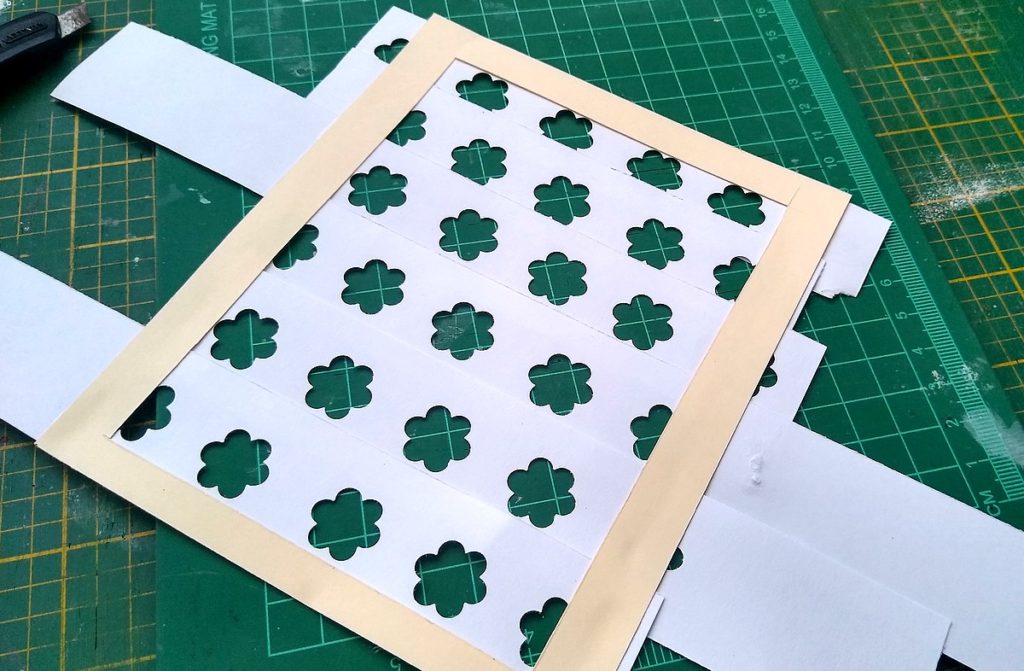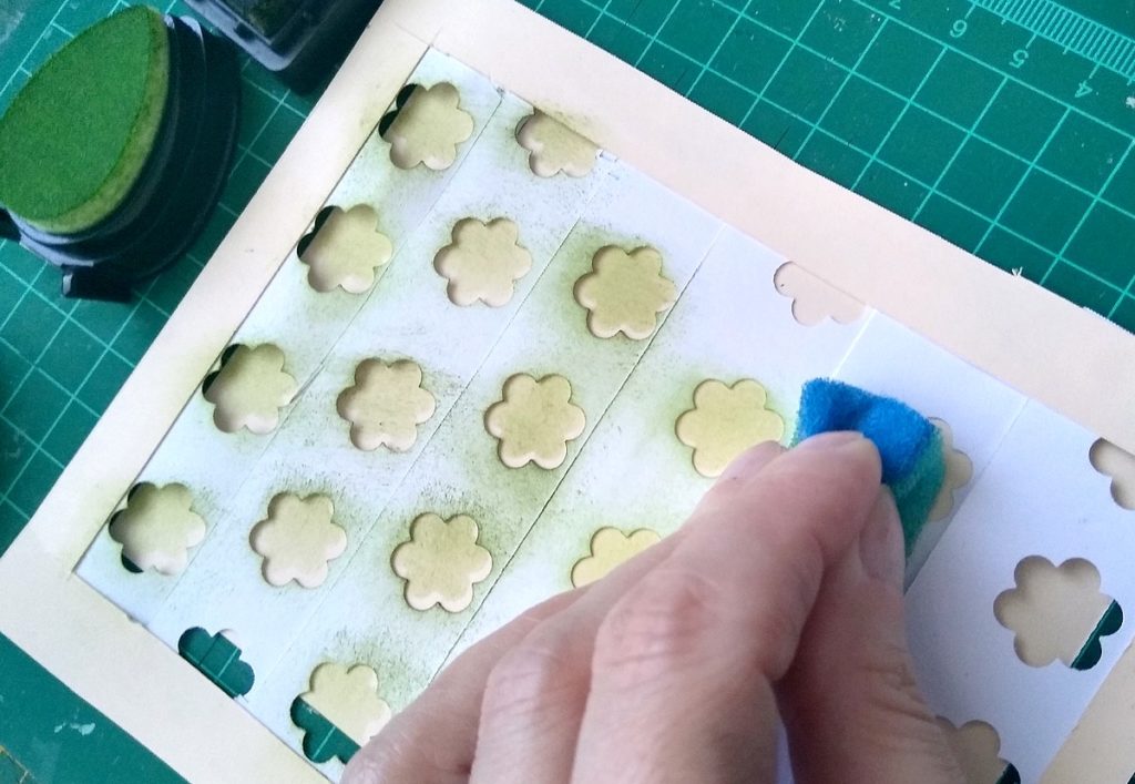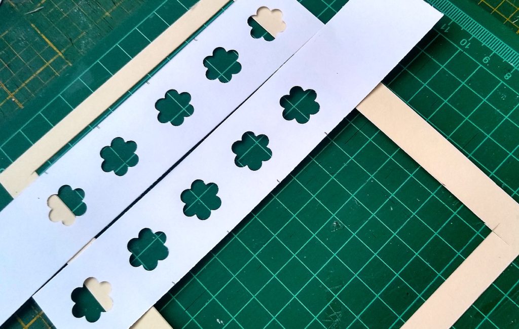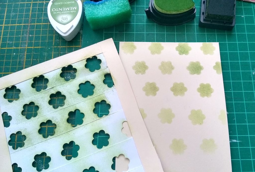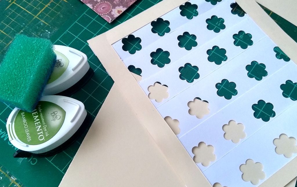 i chociaż mam sporą ilość masek i szablonów, używając dziurkacza – kwiatka, zrobiłam sobie taki szablon „zrób to sam”!